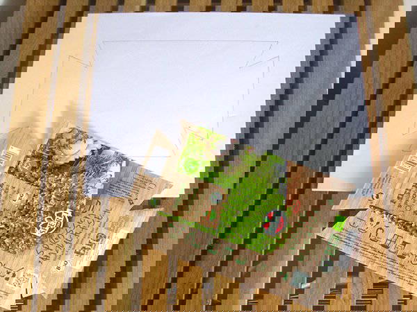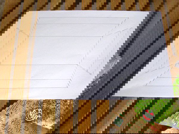Den SPERLI-Papiereinleger aus dem Anzuchtset entnehmen und als Schablone auf die Rückseite von Eurem Bastelpapier legen. Mit Bleistift alle Außenlinien nachzeichnen (inkl. der eingekerbten Dreiecke).